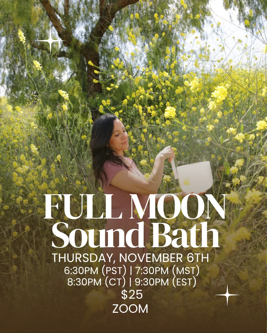 Join me for a nourishing Full Moon Sound Bath from the comfort of your home. This is your moment to pause, breathe, and release what no longer serves you under the powerful energy of the moon. Through crystal bowls, chimes, and grounding guidance, we’ll create a sacred space for deep rest, clarity, and energetic renewal.